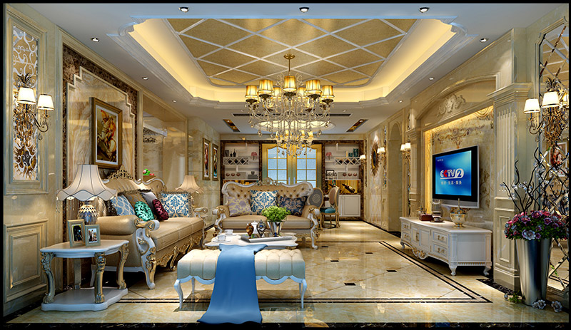 欧式风格室内装修效果图-龙光玖珑湖三居136平米